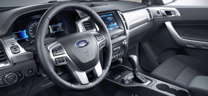 Vô lăng của Everest nhìn chung mang đến sự thoải mái, chắc tay khi cầm nhờ chất liệu da chủ đạo. Bảng điều khiển trung tâm có bố cục là các mảng miếng hình khối tích hợp nút bấm điều khiển, màn hình cảm ứng và xu hướng phần lớn nghiêng về phía bác tài.